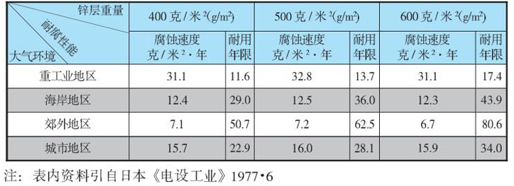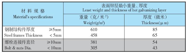 (2)鍍鋅層附著力符合美國ASTM.A153-80《鋼鐵零件熱浸鍍鋅技術規范》中的撬剝法及錘擊法的要 求。 (3)鍍鋅層均勻性符合GB3091-82《低壓流體輸送用鍍鋅焊接鋼管》或美國ANS1.C.80.1.1977《剛性 鋼導管鍍鋅規范》中的“硫酸銅浸漬法”規定。 (4)鍍鋅層耐腐性能參見鍍鋅層平均腐蝕速度試驗數據。